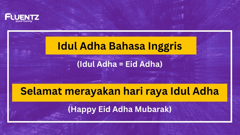 Nah, Idul Adha dalam bahasa Inggris adalah Eid Adha, dan ucapan yang populer adalah Happy Eid Adha. Tapi ada banyak variasi yang bisa kamu buat. Misalnya seperti Eid Al Adha Mubarak atau Happy Eid Adha Mubarak yang artinya selamat merayakan hari Idul Adha yang penuh keberkahan.
