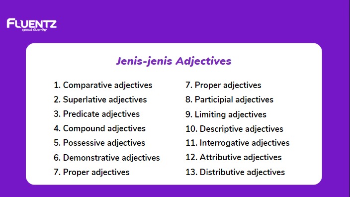 Berikut ini adalah penjelasan dan contoh tentang jenis-jenis adjectives dalam bahasa Inggris. Yuk pelajari semua jenis-jenisnya dan penggunaannya dalam kalimat!